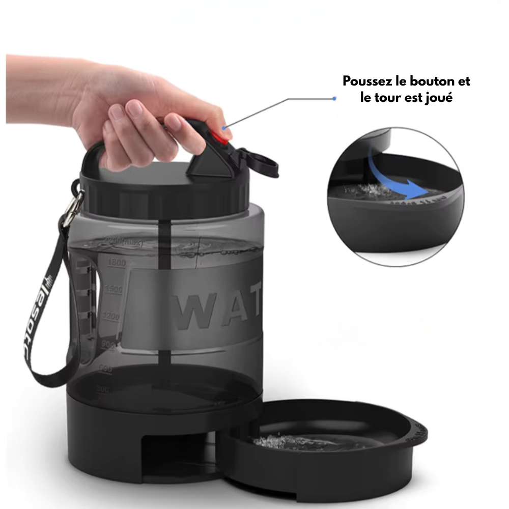 Cette bouteille de 2 litres est pensée pour hydrater votre chien lors des longues promenades, randonnées ou déplacements. Grâce à son grand volume, elle permet de transporter une quantité d’eau suffisante même pour les chiens de grande taille ou lors de journées chaudes.